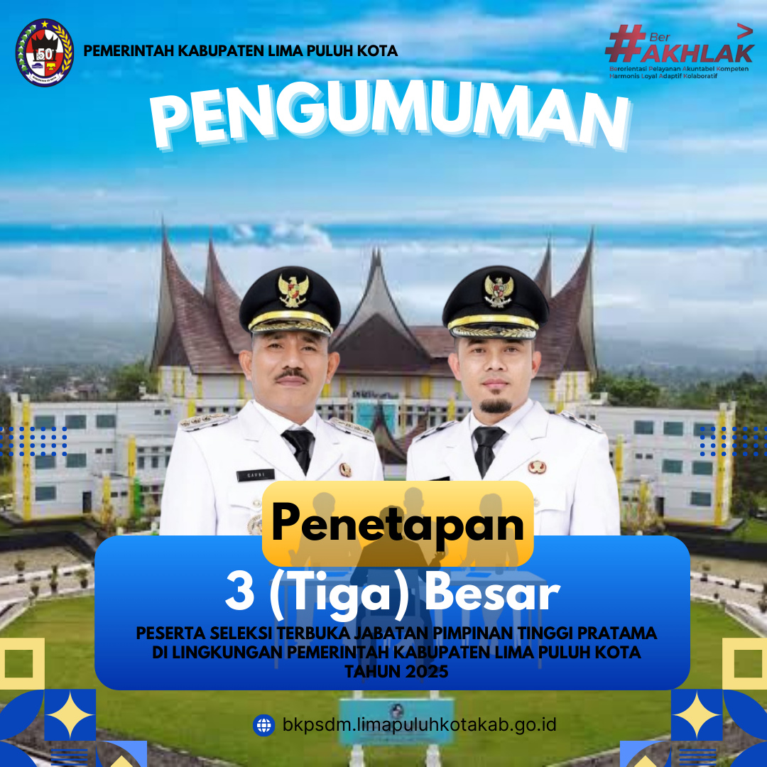 Sesuai hasil akhir pada seleksi Pegawai Pemerintah dengan Perjanjian Kerja (PPPK) Tahap I, Bupati Lima Puluh Kota telah melantik dan menyerahkan Petikan Surat Keputusan Pengangkatan PPPK Tahap I sebanyak 395 (tiga ratus sembilan puluh lima) orang tepatnya pada akhir bulan April 2025 yang lalu.