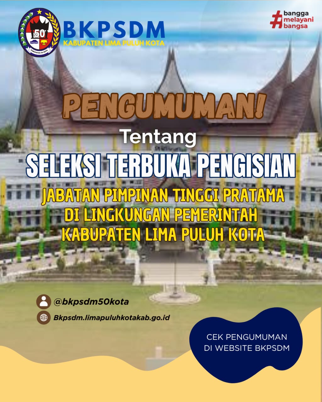 Lima Puluh Kota, BKPSDM - Penerimaan Pegawai Pemerintah dengan Perjanjian Kerja (PPPK) Tahap II di Lingkungan Pemerintah Kabupaten Lima Puluh Kota Formasi Tahun Anggaran 2024 telah sampai pada tahapan Seleksi Administrasi.